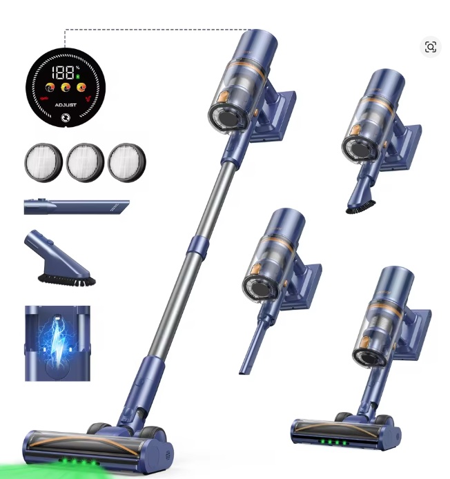 Wyposażony w odłączane baterie 8 x 2500 mAh, przewyższające wydajnością większość produktów na rynku. W pełni naładowany w 4 godziny, działa przez 60 minut w trybie ECO, zapewniając szybkie i trwałe sprzątanie domu. Pożegnaj się z przerwami i problemami z ładowaniem.